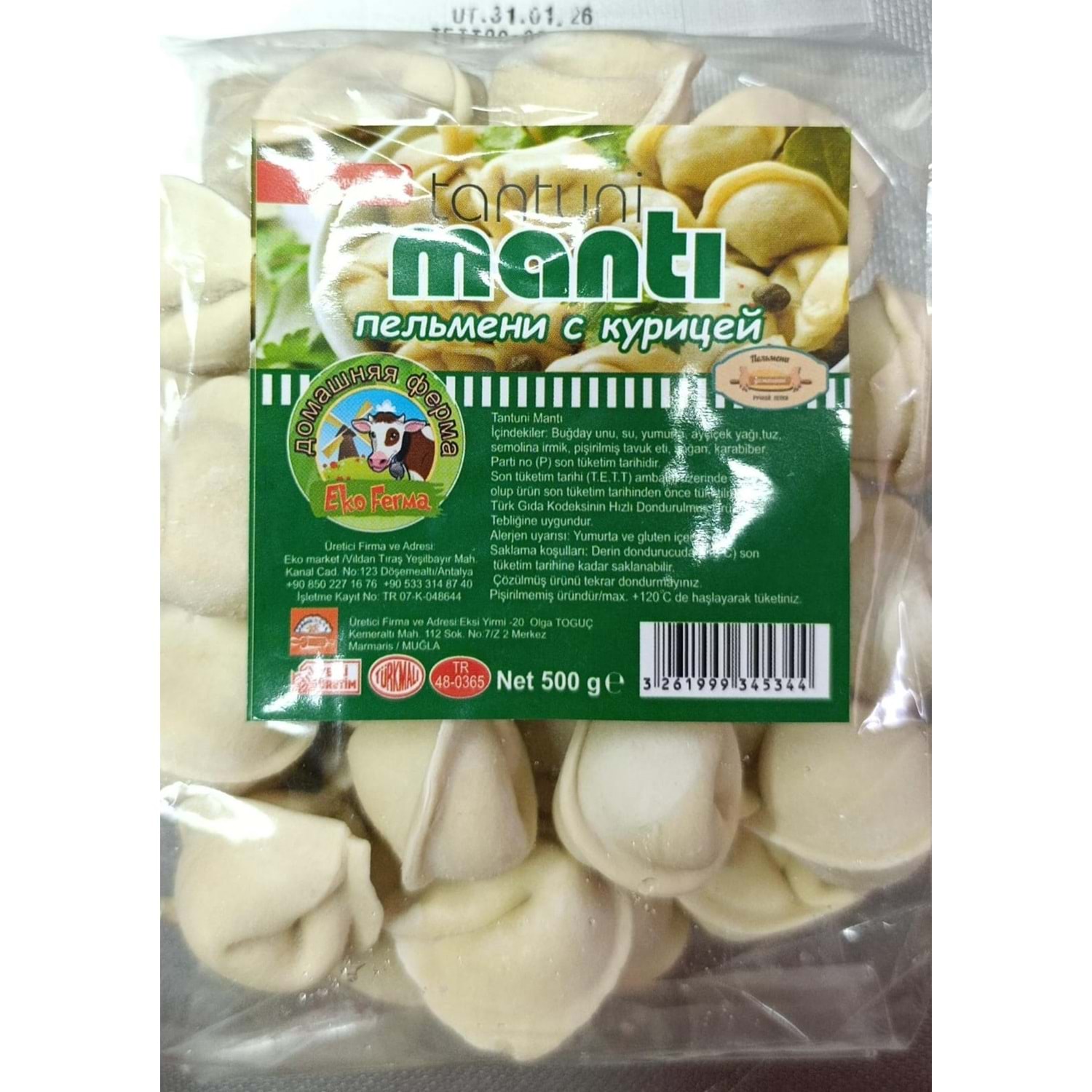 EKO MANTI TAVUK ETLİ 500GR
